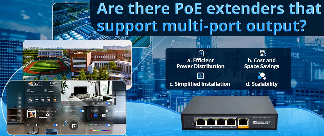 --- Multi-port extenders centralize the power distribution to multiple devices, streamlining the installation process. This can be especially beneficial in large-scale deployments, where multiple cameras or access points need to be placed far from the network switch.