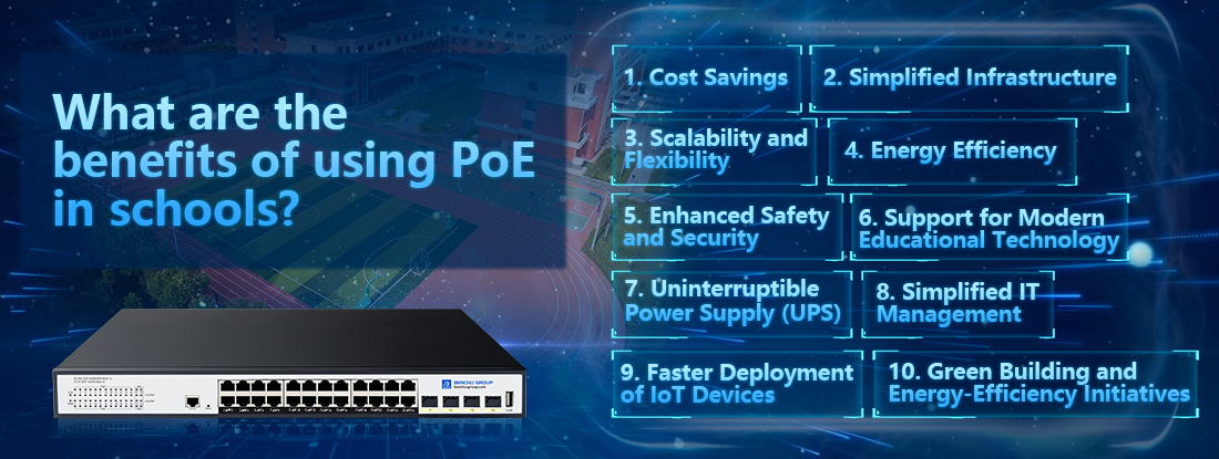 Using Power over Ethernet (PoE) in schools offers numerous benefits, ranging from cost savings to enhanced network flexibility. Here’s a detailed breakdown of the key advantages: