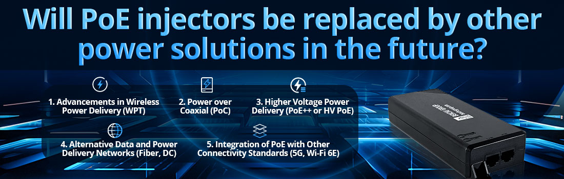 The future of Power over Ethernet (PoE) injectors, while promising, is unlikely to see them completely replaced by other power solutions in the near future, at least not for many of the use cases where they are currently dominant. However, technological advancements and evolving IoT needs will influence how PoE injectors coexist with other power solutions in a more diversified energy landscape. Let's explore some key factors and potential alternatives that could impact the future of PoE injectors.